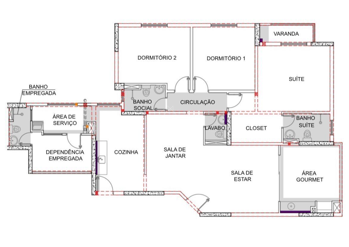 3 dormitórios + dependência de empregada